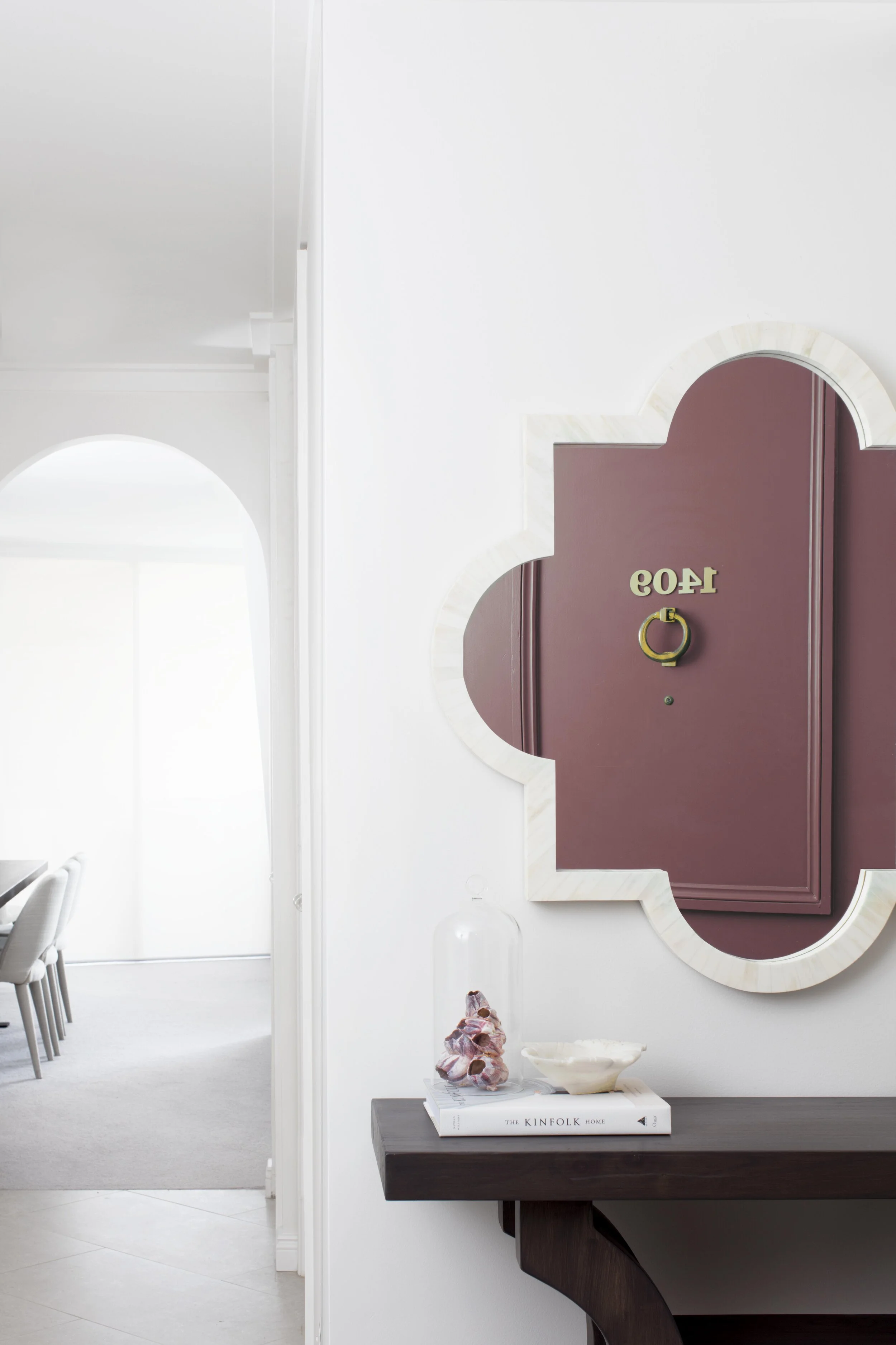 The angles of the apartment dominate the exterior so we introduced, enthusiastically, angles into the interior architecture and joinery design creating some drama which was softened by the original archway openings in the hallway, the internal decoration and styling throughout.